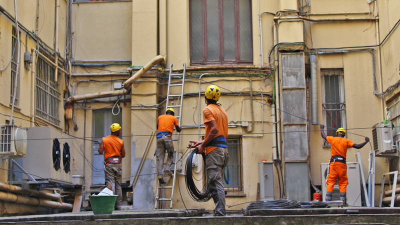 Il nostro personale tecnico qualificato per lavori in quota ci consente di eseguire palifiche, tesate aeree e il cablaggio di edifici in fibra ottica, nel rispetto di tutte le norme di sicurezza.